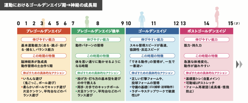 もちろん個人差はございますが、年齢によって伸びやすい能力や、時期によってした方が好ましい練習内容などが異なります。