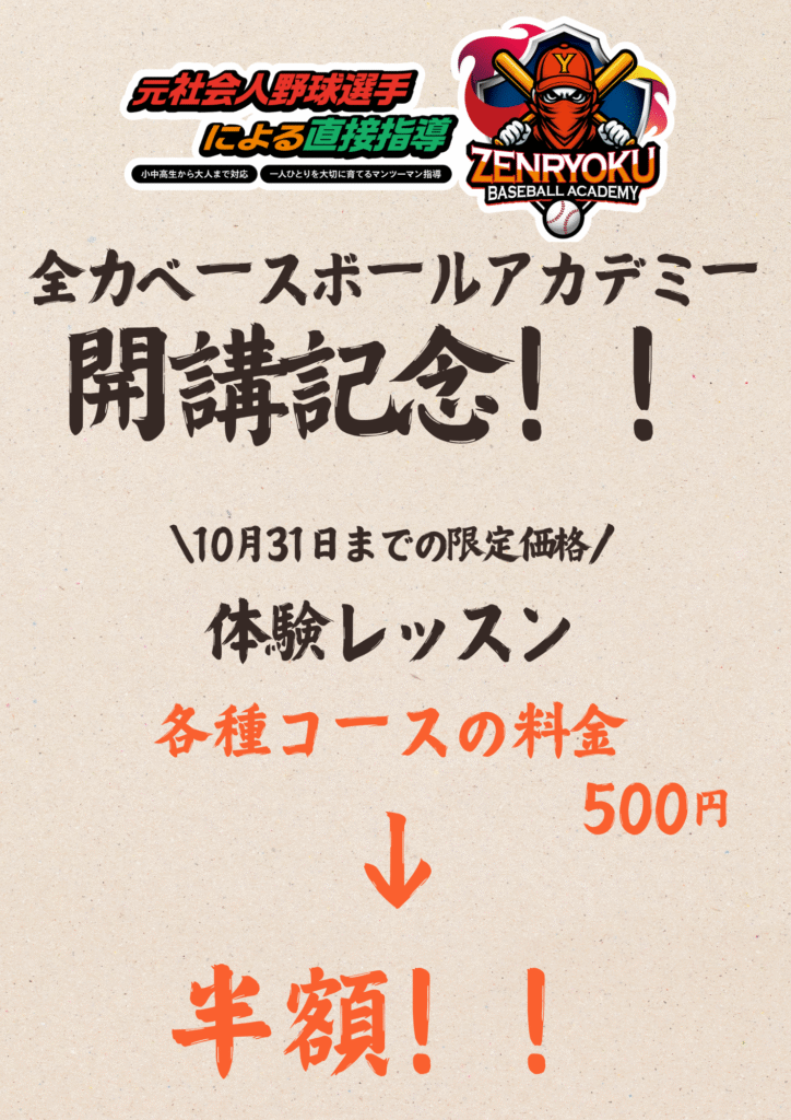 幼児〜大人まで対応している個別指導や少数、チーム指導などを行う野球スクールです